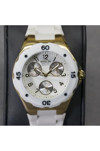 | product_description | Invicta 18796 - Reloj de cuarzo para mujer (acero inoxidable correa de silicona blanca 1.496in) color blanco. --. Acerca del producto: Caja de acero inoxidable de tono dorado de 1.457in de diámetro x 0.413in de grosor; esfera blanca; manecillas luminosas. Movimiento de cuarzo japonés calibre VD76; montado en Japón; pila SR626SW incluida. Peso del reloj: 2.38oz. Correa de silicona blanca 7.677in de largo x 0.866in de ancho; cierre de hebilla. Cristal de fusión de llama; corona de empujar y tirar; bisel de acero inoxidable unidireccional; subesferas funcionales: 60 segundos día fecha; resistente al agua hasta 98.4ft: apto para lavarse las manos y salpicaduras ligeras. No apto para nadar o bucear. Consideraciones • Solicitud de DNI para Importación |