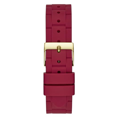 | title | GUESS Women's Gold-Tone + Iconic Red Stain Resistant Silicone Watch |