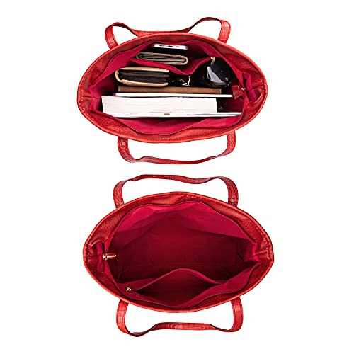 LeatherPu Leather Imported CARRY-ALL TOTE: The spacious interior and wall zippered pocket allow you to organize your belongings for easy access. Two handles make it easy to carry in your hand or over your shoulder. Bag size: 13' x 4.25' x 11.6' Handle Drop: 11' Pouch size: 7.5' (L) x 4.75' (H) MATERIAL: Crafted from buttery smooth PU leather (light-weight distressed-look) with soft fabric lining. This classic handbag is the effortlessly Tote you'll want to have and rely on for the rest of the time. It's simple yet elegant and spacious enough to carry your laptop or iPad. CLASSIC DESIGN: Minimalistic and aesthetic design with gold tone logo and hardware. Featuring top zipper closure and double flat strap. It's versatile enough to be carried almost anywhere from work to grocery runs gym visits all-day shopping trip and evenings out on the town. POUCH INCLUDED: It comes with a matching Pouch with zipper closure that can be carried by itself or hung from the tote with the help of a gold-tone chain keychain. Perfect for keeping your smaller necessities in place. AFTER-SALE SERVICE: We are confident that you will enjoy our purses and handbags. If you have any problems with your purchase please contact us and our customer service team will gladly assist you. We provide a 90-day warranty and replacements on all products. Color:Y-red/Croco |