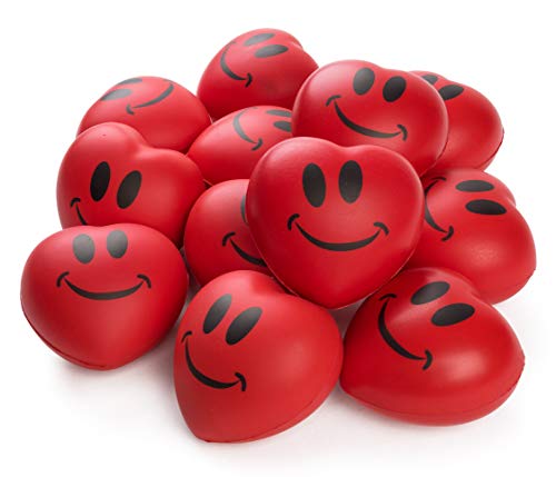 Title: Neliblu Heart Stress Balls - Valentines Day Red Hearts 3' Smile Face Squeeze Stress Relief Heart Shaped Balls; Fun Party Favors for Kids and Adults (1 Dozen)
