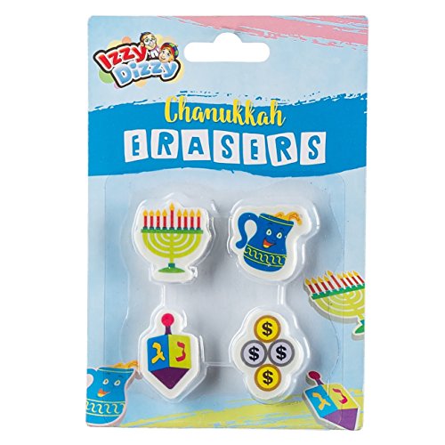 Title: Chanukah Erasers - 4 Pack - Dreidel Menorah Oil Pitcher and Gelt Shaped Rubber - Hanukah Stationary Arts and Crafts - Gifts and Games by Izzy 'n' Dizzy
