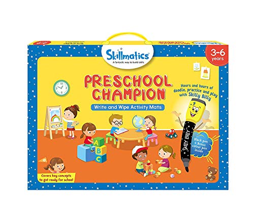 Title: Skillmatics Educational Game: Preschool Champion (3-6 Years) | Erasable and Reusable Activity Mats with 2 Dry Erase Markers | Learning Tools for Boys and Girls 3 4 5 6 Years