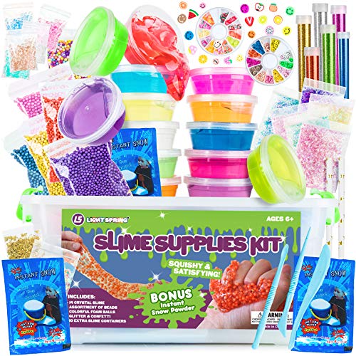 Title: DIY Slime Supplies Kit for Girls Boys - Jumbo Clear Slime Making Kit with Crystal Slime Foam Balls Crunchy Fishbowl Beads Instant Snow Glitter Stars Fruit Slices Containers - Kids Slime Kits