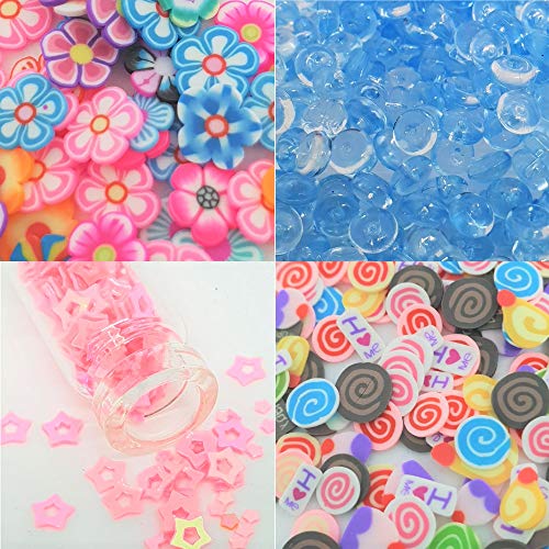 Title: KORBEL Biz Slime Charms Supplies with Tools Candy Foam Balls Glitter Candies Love Hearts Stars Fruits