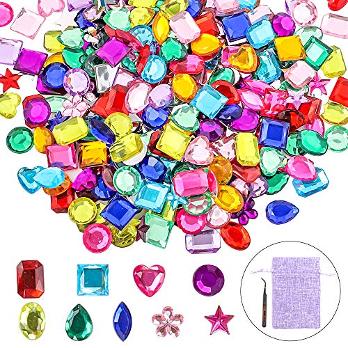 Title: YIQIHAI 360pcs Craft Gems Jumbo Jewels Acrylic Flatback Rhinestones Gemstone for Arts and Crafts Jewels 9 Shapes 10-15mm with Tweezers and Storage Box