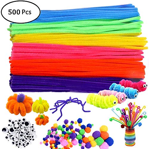 Title: 500Pcs Pipe Cleaners Craft SetIncluding 100 Pcs Chenille Stems 200 Pcs Pom Poms Craft 200 Pcs Wiggle Googly Eyes Self AdhesiveAssorted Colors and Assorted Sizes for DIY Art Craft