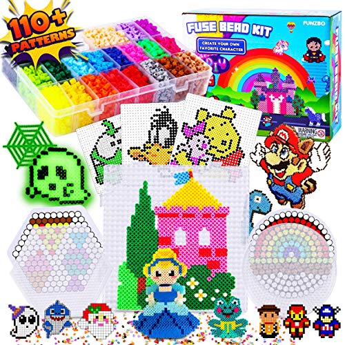 Title: FunzBo Fuse Beads Craft Kit - 111 Patterns Melty Fusion Colored Beads Arts and Crafts Pearler Set for Kids - 5500 5mm Bead 9 pegboards for Boys Girls Age 5 6 7 Classroom Activity Gift (Large)