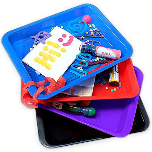 Title: Activity Plastic Tray - Art + Crafts Organizer Tray Serving Tray Great for Crafts Beads Orbeez Water Beads Painting (Set of 4 Colors - Red Blue Purple Black) - Size: SET OF 4 - Red, Blue, Purple, Black