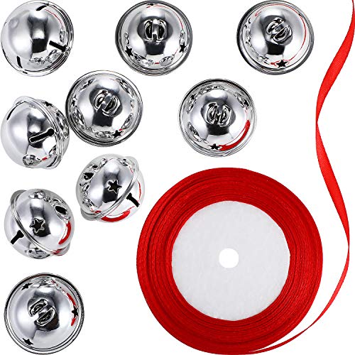 Title: 9 Pieces Star Cutouts Jingle Bells Christmas Craft Bells with Red Ribbon Roll for Christmas Decorations