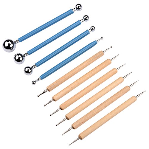 Title: Meuxan 10 Piece Dotting Tools Ball Styluses for Rock Painting Pottery Clay Modeling Embossing Art Color:Blue Wooden
