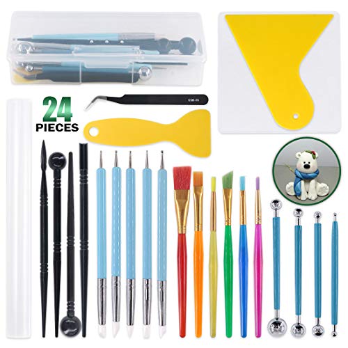 Title: Keadic 24 Pieces Carving Modeling Tool Set Ball Stylus Clay Sculpting Tools Dual-Ended Design Pottery Tools Paint Brush Set Acrylic Clay Roller and Sheet for Rock Painting Pottery Clay Craft