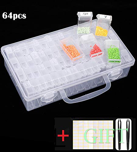 Title: SanerDirect 64 Grids Diamond Painting Drill Storage Container Beads Organizer Storage Case with Label and Tweezers Color:64 Grids