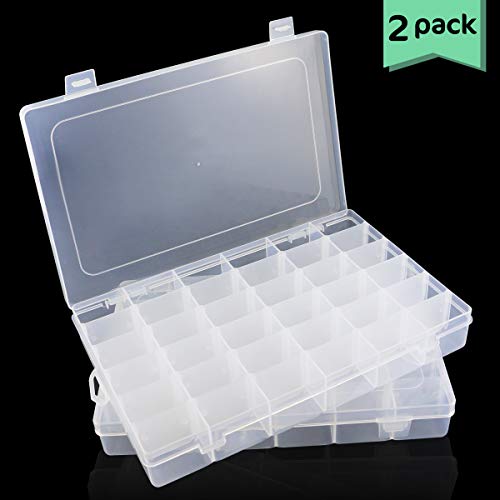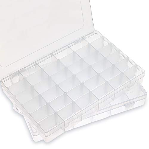 Title: SGHUO 2 Pack 36 Grids Plastic Organizer Box with Adjustable Dividers Clear Storage Container for Beads Jewelry Fishing Tackles Letter Board Letters