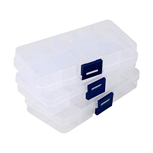 Title: TDOTM Adjustable Clear Plastic 10-Grid Jewelry Organizer Divider Storage Earring Storage Containers Box 3 Pack (Blue Button)