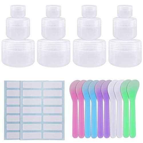 Title: SelfTek 12Pack Cosmetic Containers 3 Sizes Empty Plastic Storage Jars with 10Pcs Spatula and 28Pcs Sticker for Crafts Lotions and DIY Slime