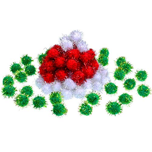 Title: Shappy 100 Pieces Christmas Pom Poms Glitter Pom Decor for Arts Crafts DIY Green White and Red (25 mm) - Size: 25 mm
