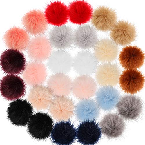 Title: 30 Pieces Faux Fur Pom Pom Balls DIY Faux Fox Fur Fluffy Pom Pom with Elastic Loop for Hats Keychains Scarves Gloves Bags Accessories (Color Set 2)
