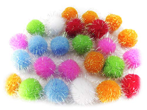 Title: YYCRAFT 30pcs Large Glitter Tinsel Pom Poms Sparkle Balls for DIY CraftCat Toys-Orange(1.5 Inch)