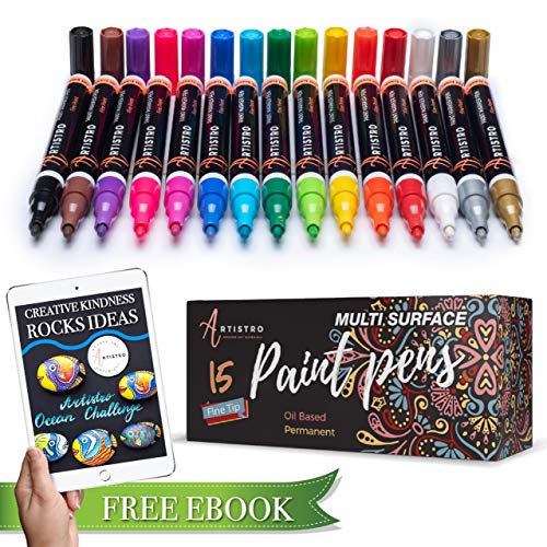 Title: Paint Pens for Rock Painting Stone Metal Ceramic Porcelain Glass Wood Fabric Canvas. Set of 15 Permanent Oil Based Paint Markers Fine Tip