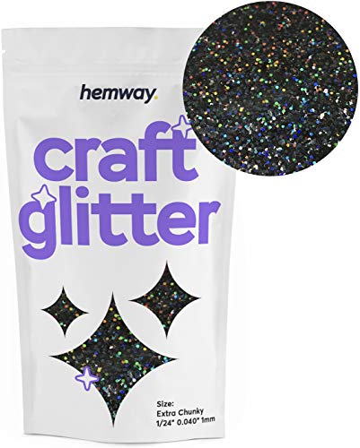 Title: Hemway Craft Glitter 100g 3.5oz Extra Chunky 1/24' 0.040' 1MM (Black Holographic)