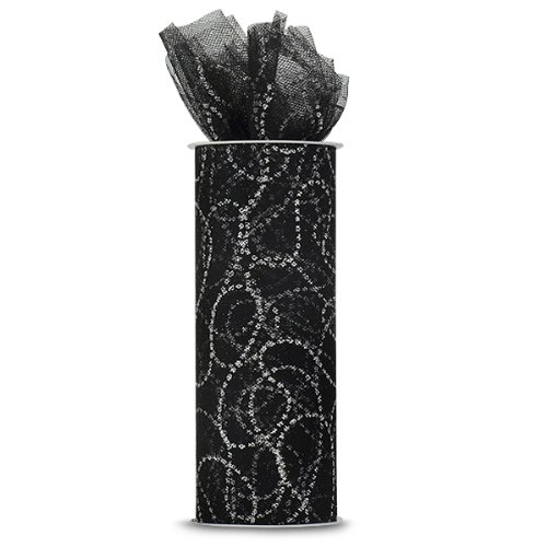Title: 'Tulle Glitter Curves 6'' Wide 10 Yards Buy-The-Spool-Black W/Silver'