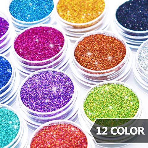 Title: Glitter Wenida 12 Colors Holographic Cosmetic Laser Festival Powder Sequins Craft Glitter for Arts Face Hair Body Nail - Size: 12 Boxes Color: 12 Colors # 2