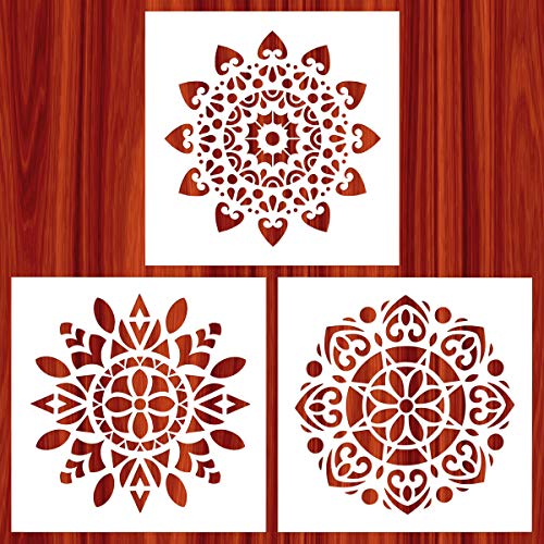 Title: AK KYC Stencils Mandala Painting Stencil Stencils for Painting (12x12 inch Large Size) on Wood Wall Floor Tile Fabric Furniture Decor Mandala Dotting Tools Reusable Style 1