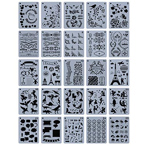 Title: YUEAON 25-Pack 5' x 7' Journal Stencils Drawing Floral Template Stencil Supplies for DIY Bullet Scrapbook Notebook Dairy Planner Craft