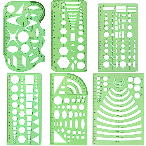 Title: COCODE Set of 6 Plastic Geometric Stencils Measuring Templates for Office and School Building Formwork Drawings Drafting Templates Clear Green Color