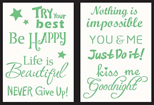 Title: GSS Designs Pack of 2 Decor Stencils - 6' x 8.25' Reusable Stencils Template Words Stencil for Journal/Craft/Scrapbooking and Home Decor (SL-008)