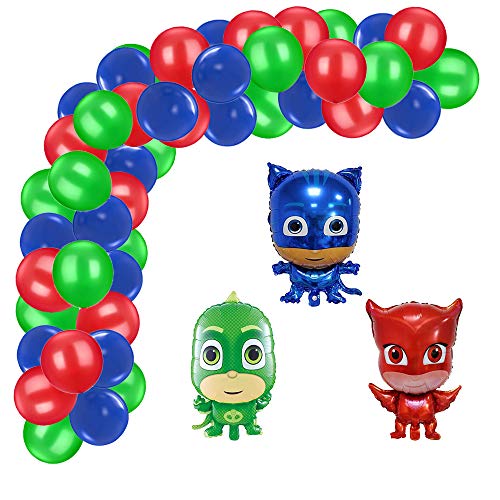 Title: PJ Hero Masks Party SuppliesRed Green Blue Balloon Garland Kit3PCS 26 inch Cartoon Helium Balloons for Child’s Party Decorations.