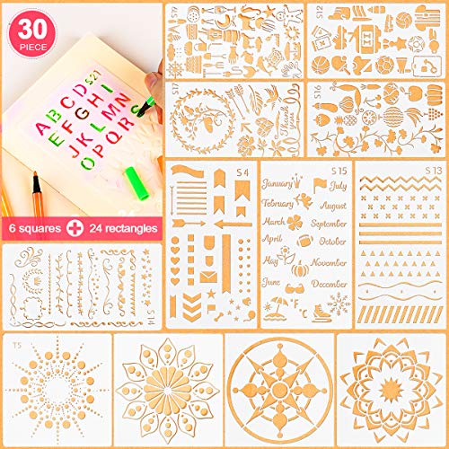 Title: 5ARTH Journal Stencils Set - 30 Pcs Bullet Stencils for A5 Notebook Letter Stencils Number Stencils Mandala Stencils and More DIY Drawing Templates for Kids Women