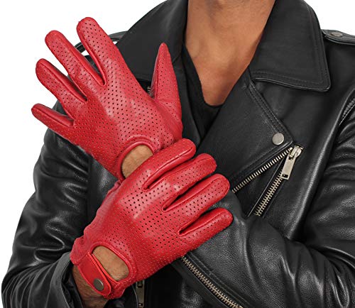 Title: Miracle TM Maroon Leather Driving Gloves for Men - Mens Winter Deerskin Leather Gloves - Color: Maroon Half Perforation - Men Gloves