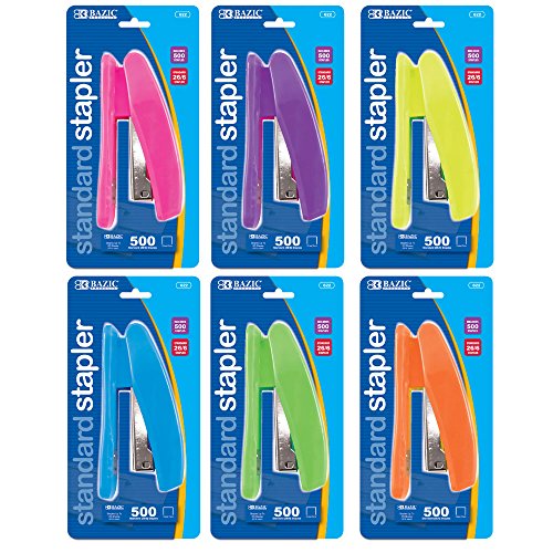 Title: BAZIC Bright Color Standard (26/6) Stapler w/ 500 Ct. Staples Case of 12 (622-12)