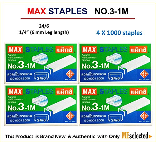 Title: MAX No.3-1M Flat Clinch Staples (24/6) for Office Stapler - 4 Boxes (4000-Staples)
