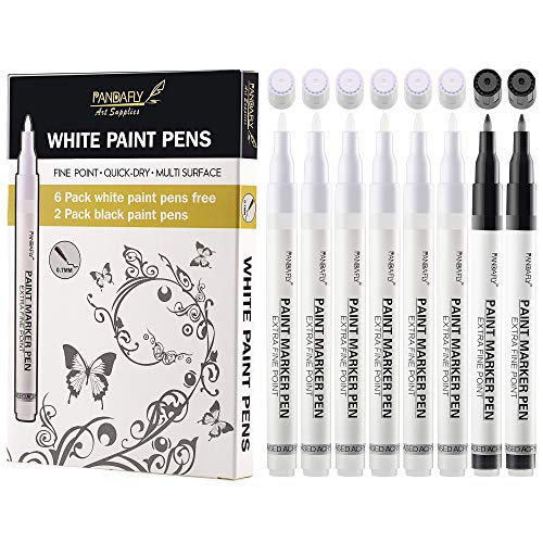 Title: White Paint Pens 8 Pack 0.7mm Acrylic Permanent Marker 6 White With 2 Black Paint Pens for Wood Rock Plastic Leather Glass Stone Metal Canvas Ceramic Marker Extra Very Fine Point Opaque Ink Color:8 Pack - White Black