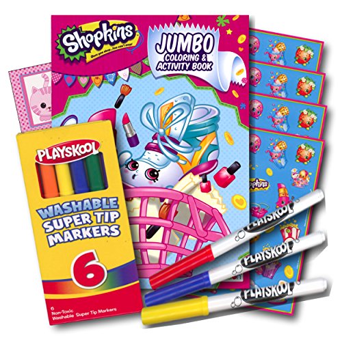Title: Shopkins Coloring Book with Stickers and Washable Markers ~ 96 Page Coloring Book Shopkins Stickers Washable Markers & Bonus Sticker!