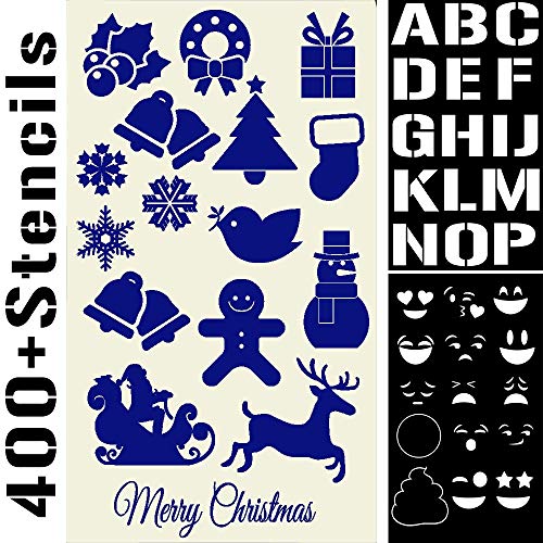 Title: 400 Stencils Set Alphabet Letters Numbers for Art and Craft Christmas Cards Face Paint Bullet Journal Writing Doodle Drawing Decorate Fabric Wood Rock Glass - Reusable Stencil 20 Sheets 4x7 inch