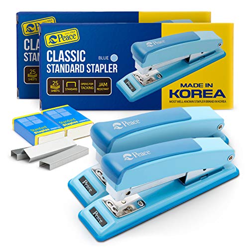 Title: Peace Stapler with 2000 Staples 2 Pack Desk Metal Stapler 25 Sheet Capacity Standard Commercial Stapler 100% Made in Korea Blue Stapler - Size: 2 Pack Color: Blue