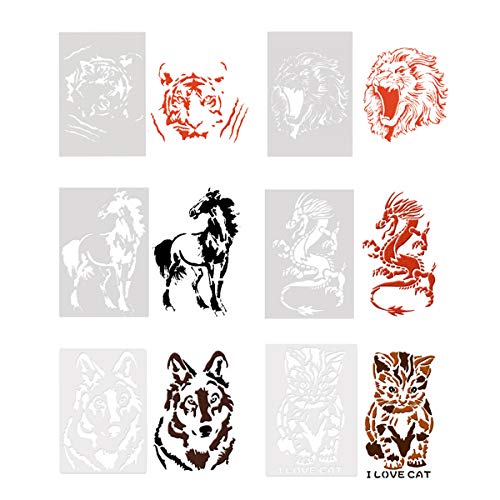 Title: 6Pcs Drawing Painting Stencils Wolf Lion Tiger Horse Dragon Cat Animals Template Sets for Craft Projects Home Art and Kids Creation(7x10.24 Inches)