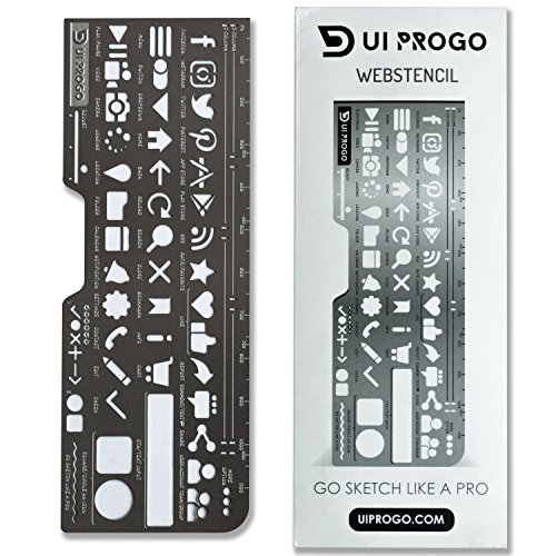 Title: UI PROGO Stainless Steel Stencils for Portable Drawing - Perfect for UI UX Design Material - Large Icons for Easy Stenciling - Includes Social Media Icons ? Webstencil