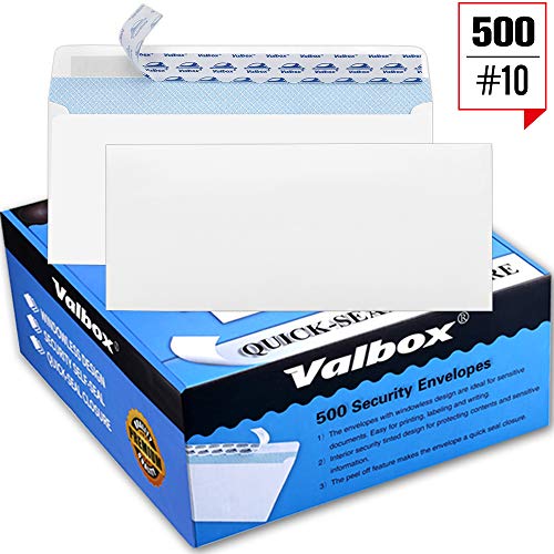 Title: ValBox 500 Count #10 Security Self-Seal Envelopes Windowless Design Security Tint Pattern for Secure Mailing 4-1/8x9-1/2'White Business Envelopes