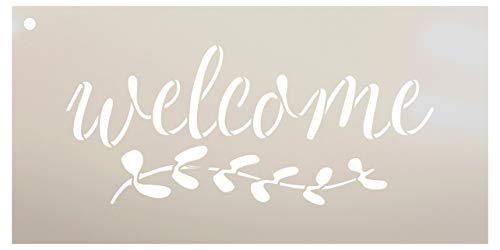 Title: Welcome Vine Stencil by StudioR12 | Reusable Mylar Template Paint Wood Signs | Craft Simple Rustic Spring Fall Home Decor - Porch - Wedding | DIY Laurel Leaf Farmhouse Cursive Select Size (10' x 5') - Size: 10" x 5"