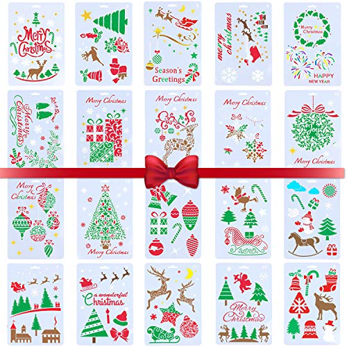 Title: YOUTH UNION 20 Pcs Christmas Stencils Journal Template Painting Stencil - Merry Christmas Santa Claus Xmas Trees Snowflakes ReindeersGift Boxes for Card DIY Drawing Painting Craft Projects