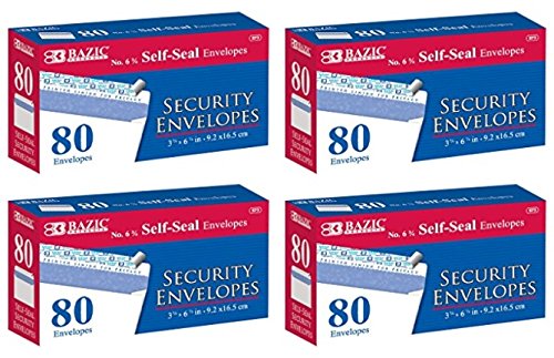 Title: BAZIC No.6-3/4 Peel and Seal Security Envelope White 4 Pack of 80 Per Pack (573-24P) - Size: 80 Envelopes (4 Pack)