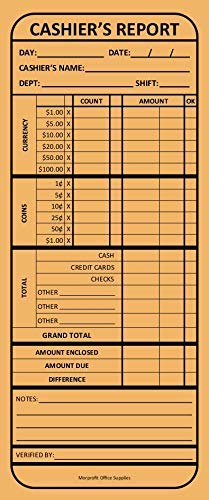 Title: 100 Cashier's Deposit Report Envelopes - for Stores Restaraunts and Retail Businesses