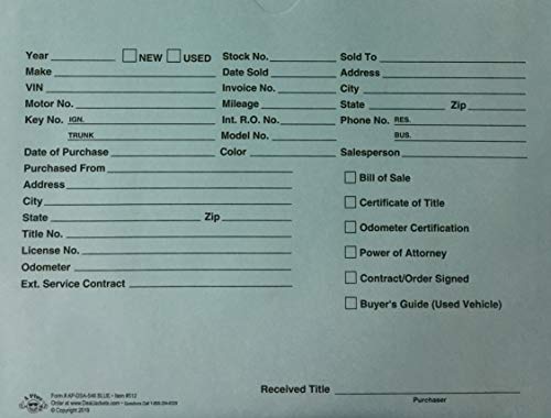 Title: Vehicle Deal Envelopes Deal Jackets Blue (500/box) (P5)