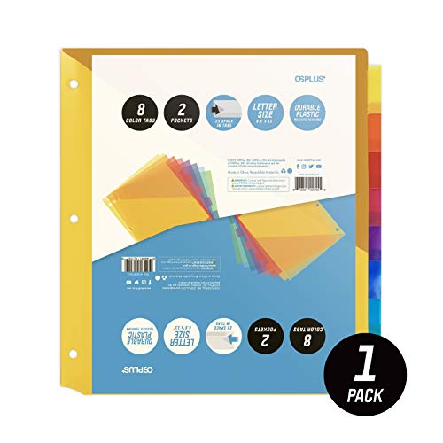 Title: OS Plus 8-Tab Plastic Binder Dividers with 2 Pockets Insertable Multicolor Big Tabs 1 Set - Size: 1 Set