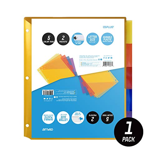 Title: OS Plus 5-Tab Plastic Binder Dividers with 2 Pockets Insertable Multicolor Big Tabs 1 Set - Size: 1 Set