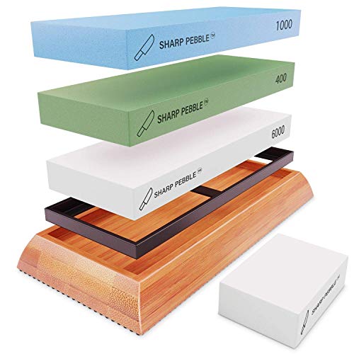 Title: Sharp Pebble Premium Extra Large Sharpening Stone Set- Whetstone Knife Sharpener- Grits 400/1000/6000 Waterstone & Flattening Stone- Kitchen Knife Sharpener with NonSlip Bamboo Base & Gift Box
